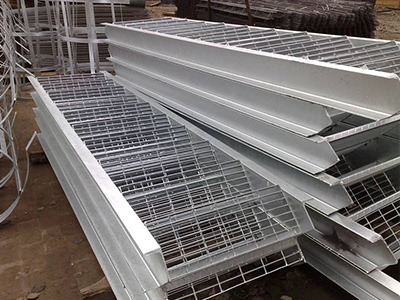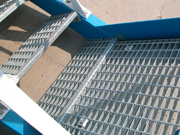 樓梯踏步板是由鋼格柵板加工而成的(鋼格柵板是用扁鋼按照一定的間距和橫桿進行交叉排列,并且焊接成中間帶有方形格子的一種鋼鐵制品)。該產(chǎn)品表面一般用熱鍍鋅、電鍍鋅處理。